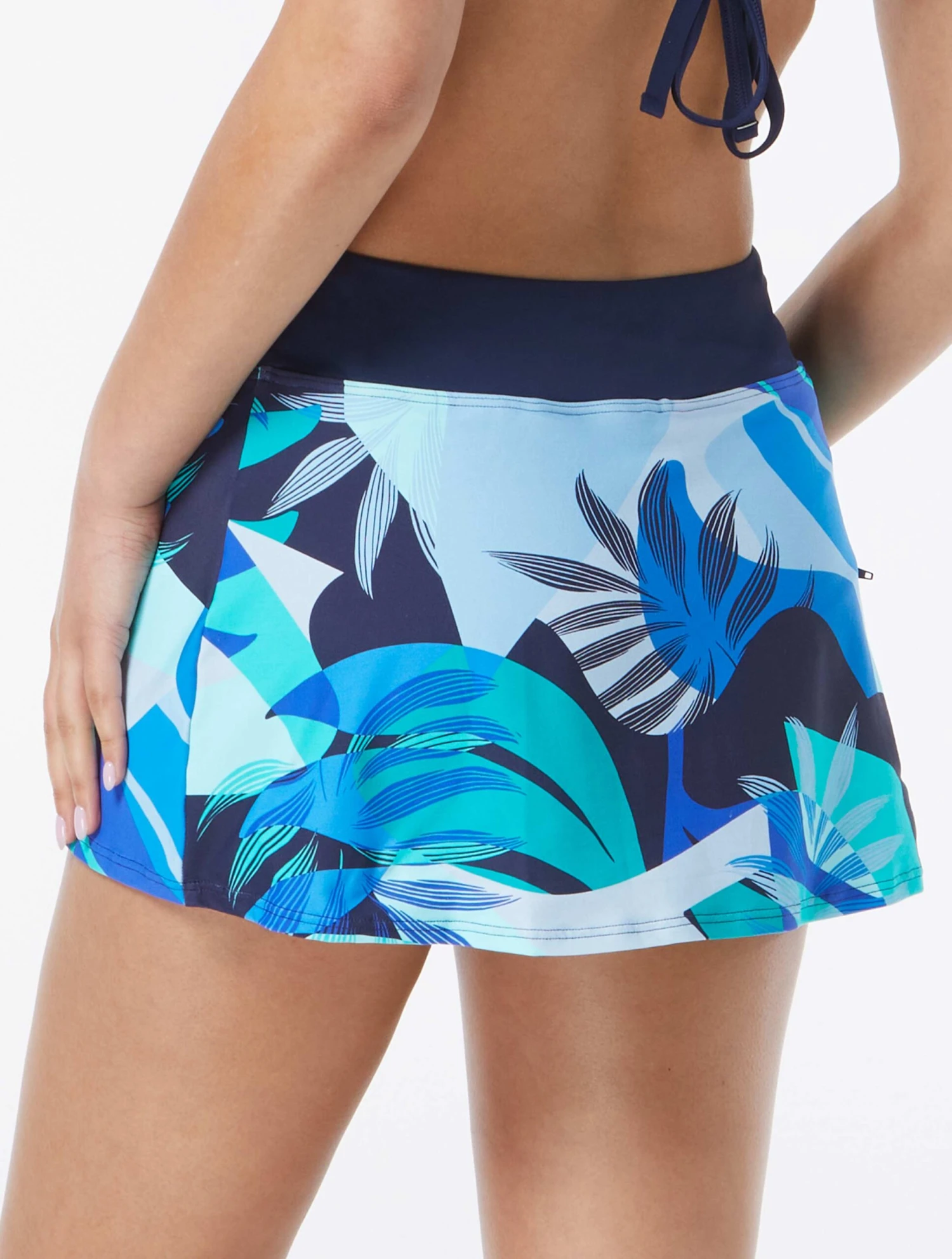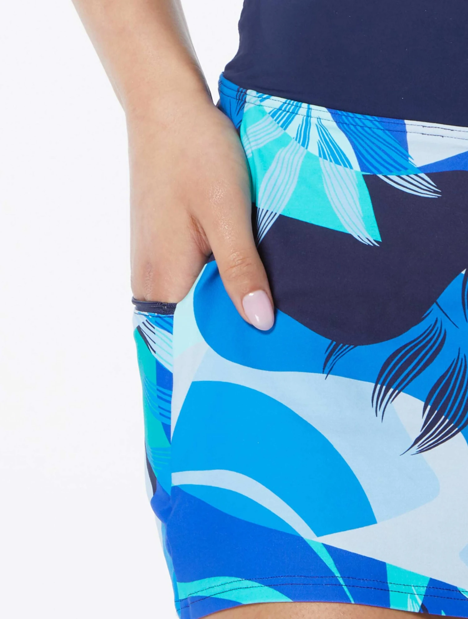 For a comfortable sporty fit the best-selling Beach House Emma Pull On Swim Skort in a bold, geo palm print is a must-have! Shorts are layered underneath a skirt to offer confident coverage and a figure-flattering fit. A trendy and functional zippered pocket provides room for cash or a key, no purse needed! Beach House swimwear is designed with high-end fabrics that bend with you for extra comfort, easy fit and shape retention.