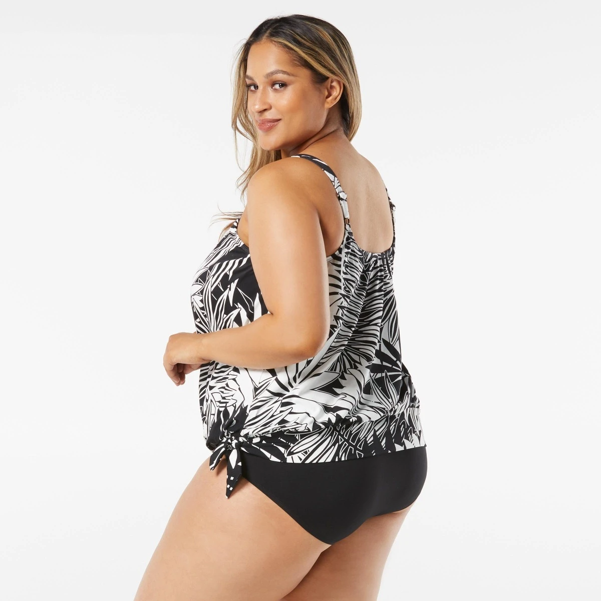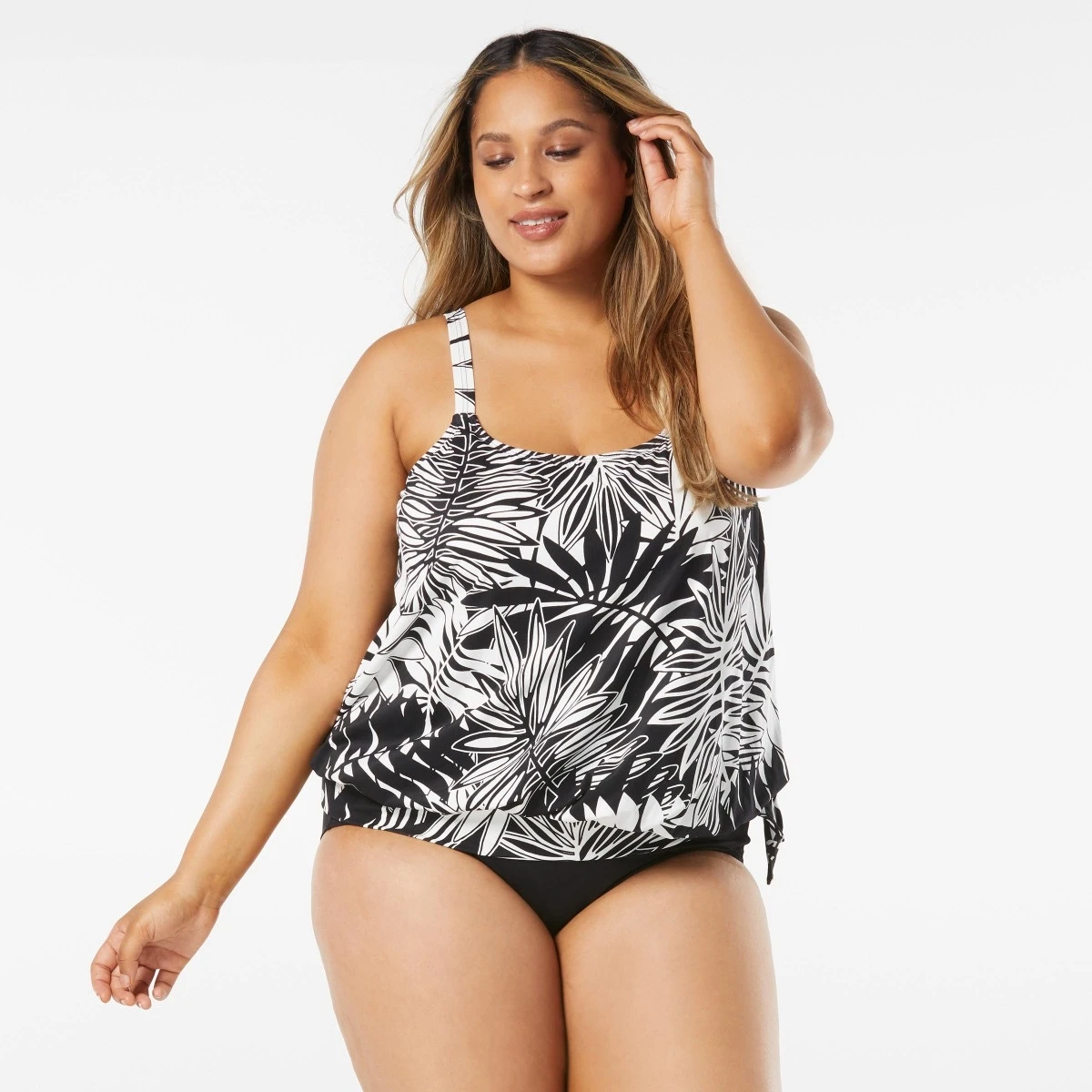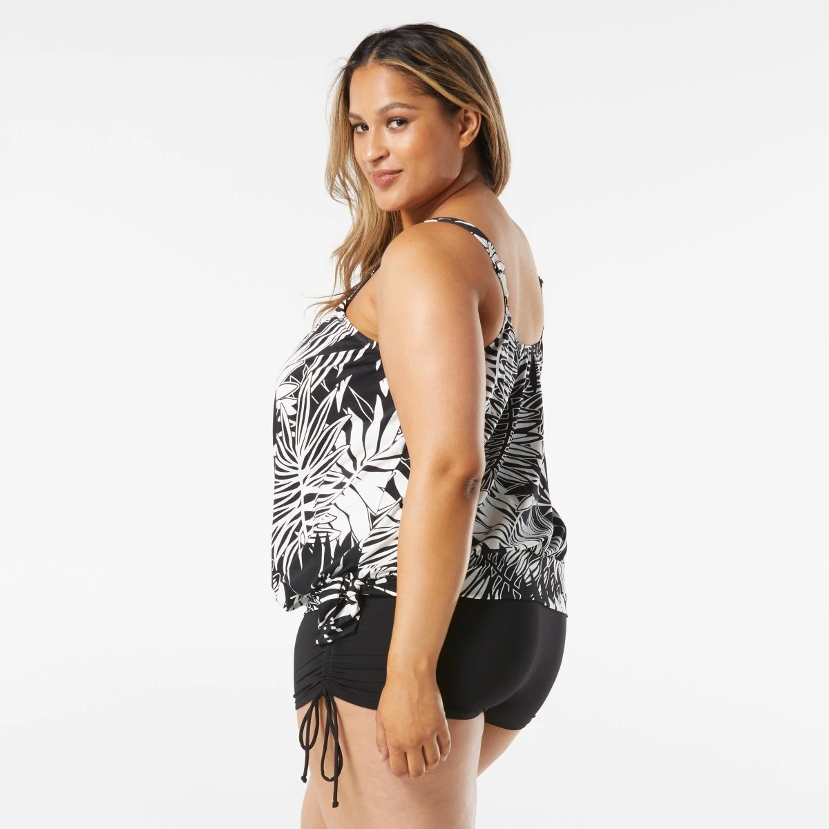 Get the perfect poolside look with the Beach House Plus Size Sarah Blouson Tankini Top. This tankini gives you feminine flare in a curve-contouring style in an abstract palm print. Soft cups provide shapely support while adjustable wide straps offer a customized, perfect fit! Beach House swimwear is designed with high-end fabrics that bend with you for extra comfort, easy fit and shape retention.
