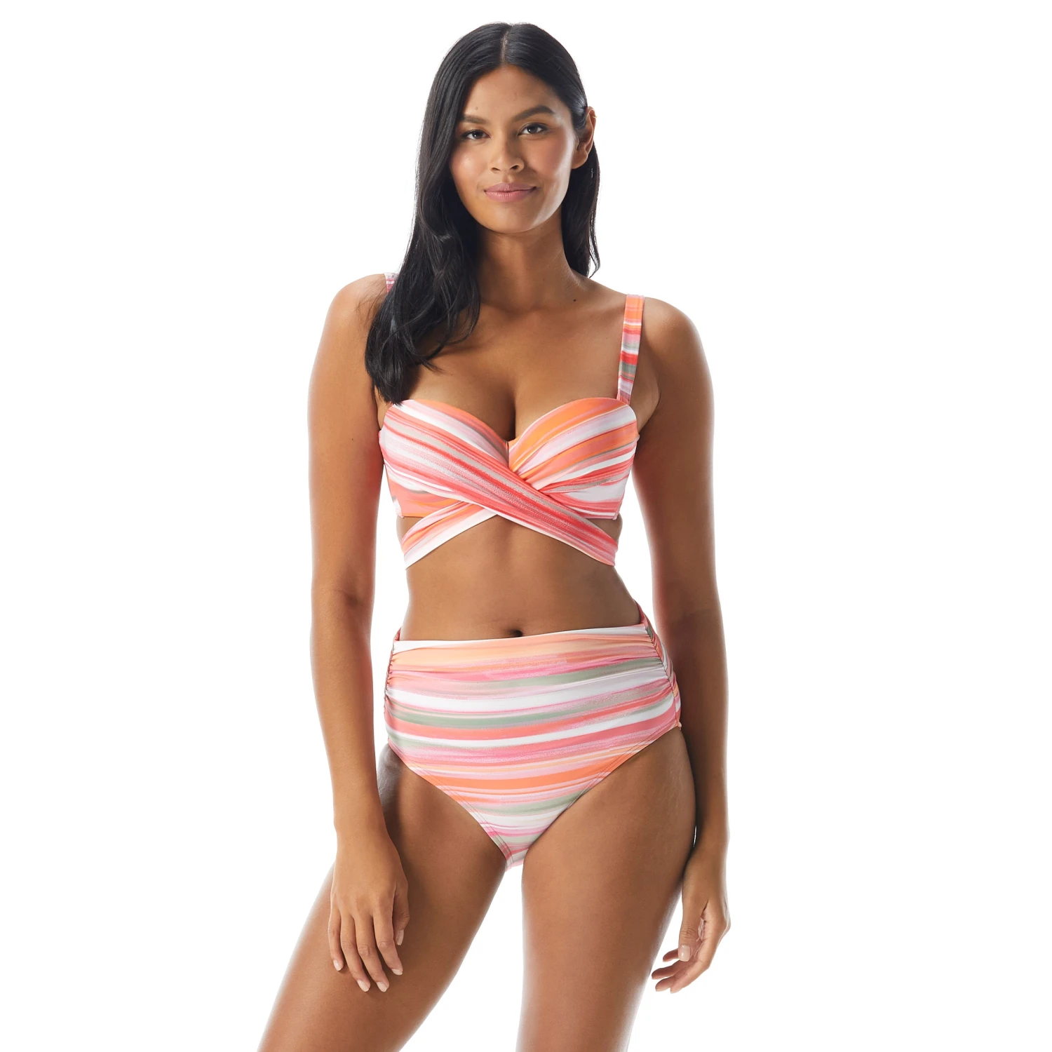 Peace, love and Paloma Stripe! Sultry and supportive, the Coco Reef Five Way Bra Sized Underwire Bikini Top is our best-selling bikini top. Versatile and sexy with an equal emphasis on fit makes this bra bikini top a must-have for every woman. A molded cup and underwire offer a supportive fit. The convertible neckline lets you reinvent your look so you can switch up your style with each wear. Featuring LYCRA® XTRA LIFEâ„¢, our swimsuits are chlorine resistant, colorfast and look new longer.