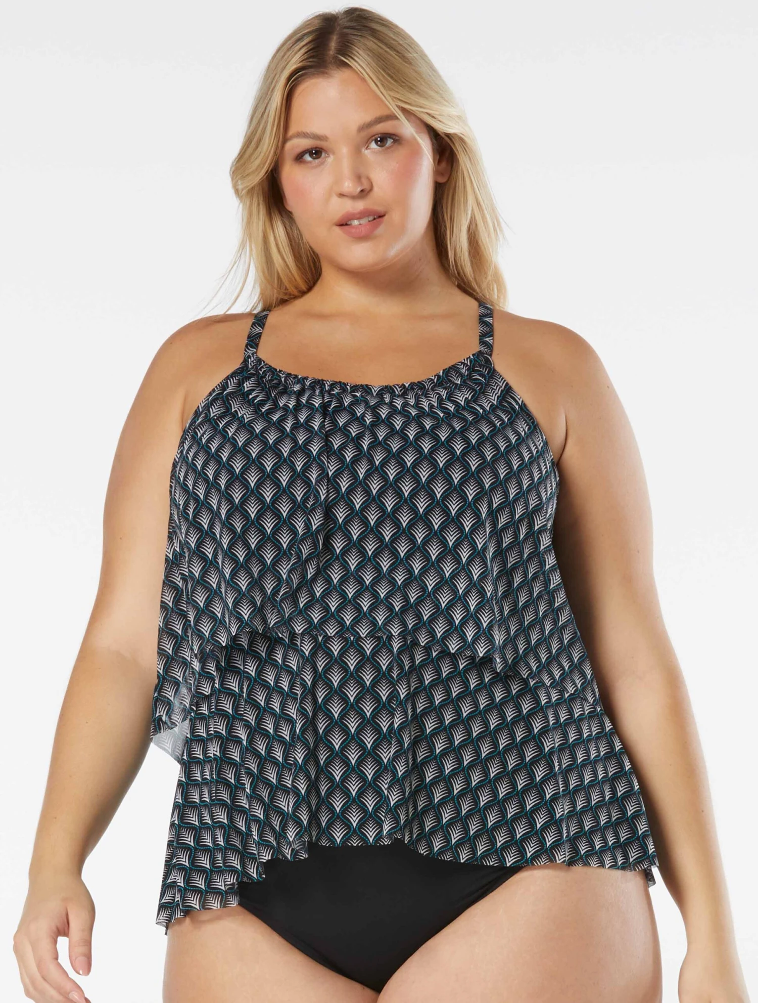 True story, you’ll love our True Tankini! Featuring mesh layers and an abstract, oasis inspired print, underwire, removable soft cups and adjustable straps, the Coco Reef True Bra Sized Mesh Layer Underwire Tankini Top is the perfect addition to your swim collection.