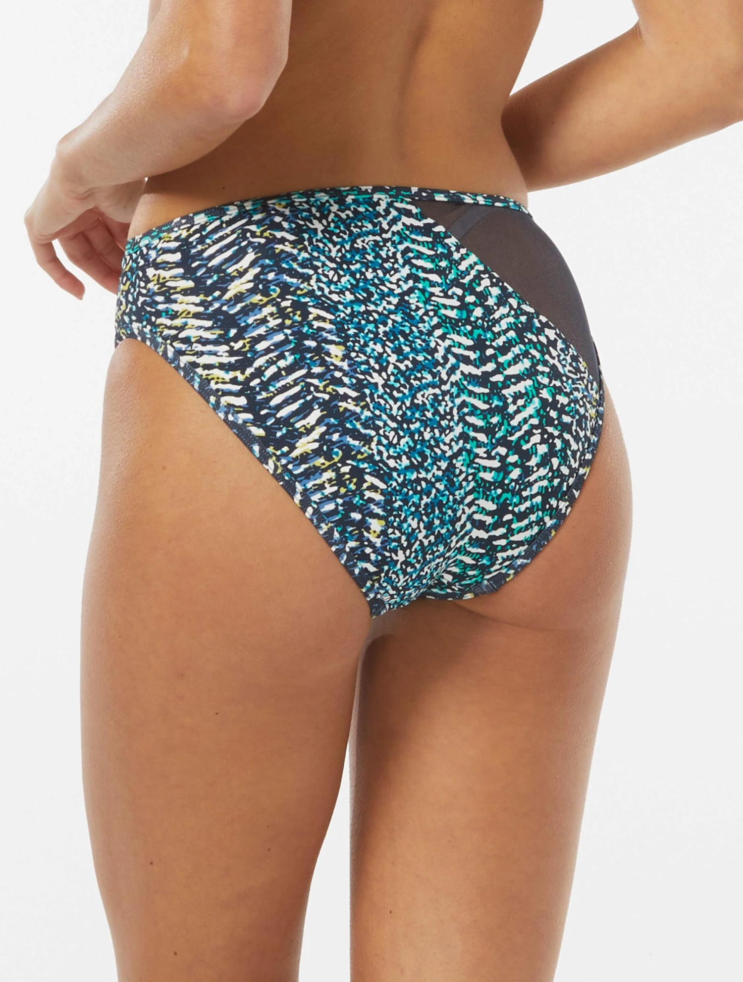 The Vince Camuto High Leg Bikini Bottom takes a classic bottom and adds a bold, abstract animal print paired with mesh inset for an ultra chic bikini bottom.